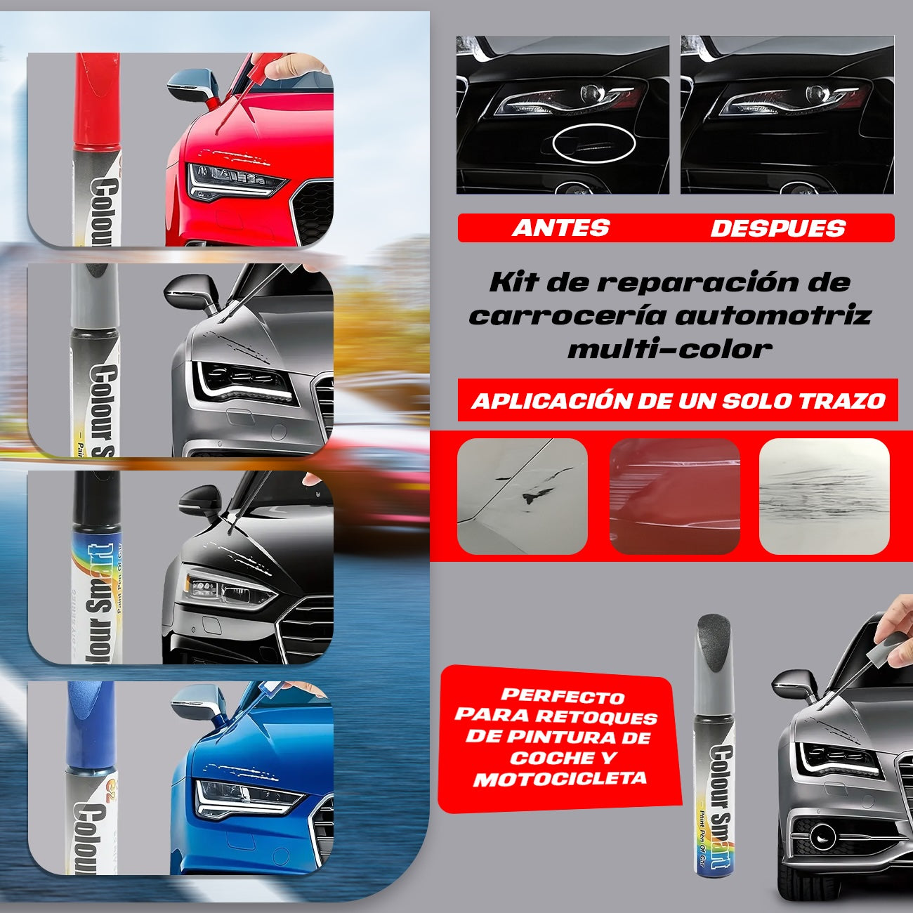 ¡CORRIGE RAYONES EN SEGUNDOS Y DEVUELVE A TU AUTO SU APARIENCIA ORIGINAL!